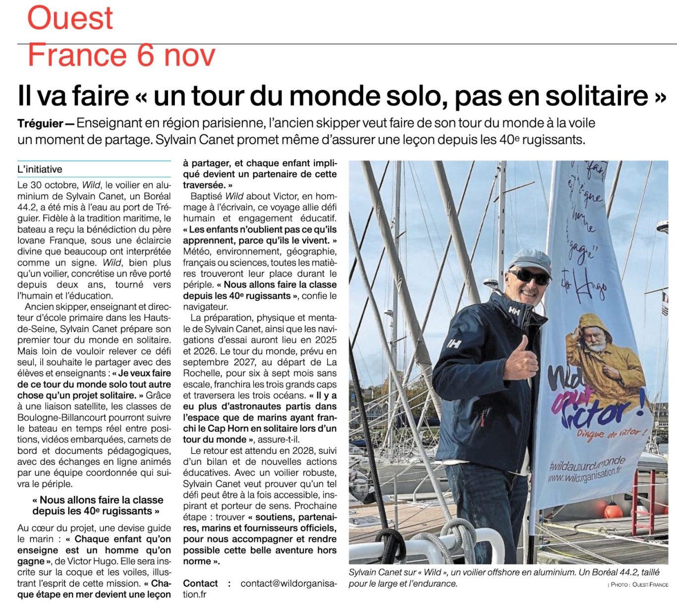 Wild, voilier taillé pour la haute mer, portera la citation célèbre du grand homme universellement connu et reconnu, Victor Hugo : "Chaque enfant qu'on enseigne est un homme qu'on gagne"