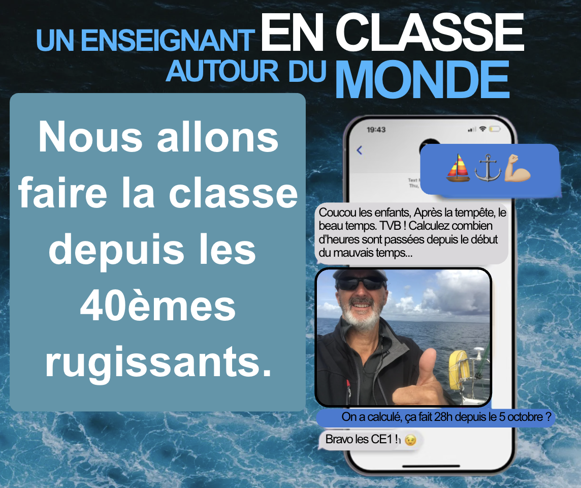 Géographie : "Regarde, il est au Cap Horn comme Magellan” - Sciences en action : météo, environnement, saisons... - “C’est quoi le 7ème continent de plastiques ?” - Français motivant : récits d'aventure en direct - “Comme Jules Verne mais en plus de 80 jours ! ”